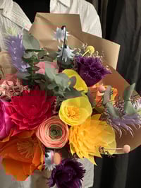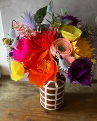 Paper flowers and foliage will vary slightly, due to the handmade nature of each piece.